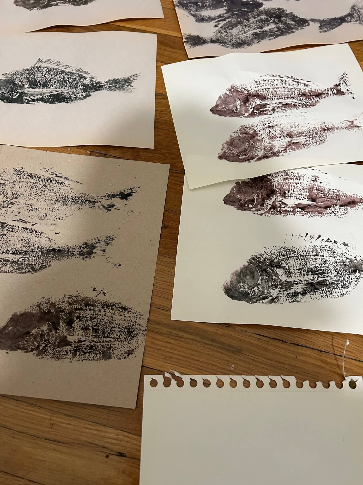 Η πρώτη είναι η Ιαπωνική τεχνική GYOTAKOU, μια πολύ παλαιά μέθοδος καταγραφής και μελέτης των ψαριών, που ήταν πολύ διαδεδομένη πριν την εμφάνιση της φωτογραφικής μηχανής. Με αυτή τη μέθοδο το ψάρι έχει την φυσική του παρουσία, διατηρεί την υφή του και το φυσικό του μέγεθος. Στον 19ο αιώνα τα αλιευτικά σκάφη στην Ιαπωνία ήταν εξοπλισμένα με ρυζόχαρτα, sumi-e μελάνι και πινέλα και κατέγραφαν με περίτεχνες εκτυπώσεις τα φρέσκα ψάρια.